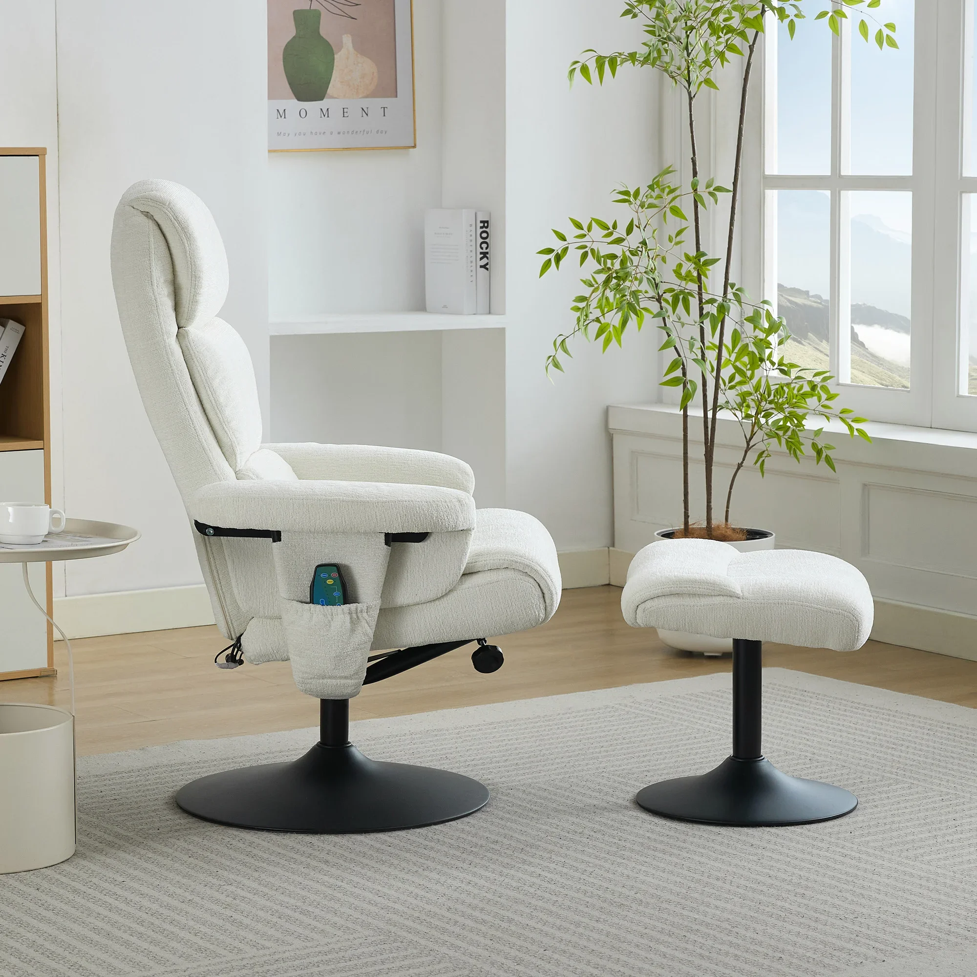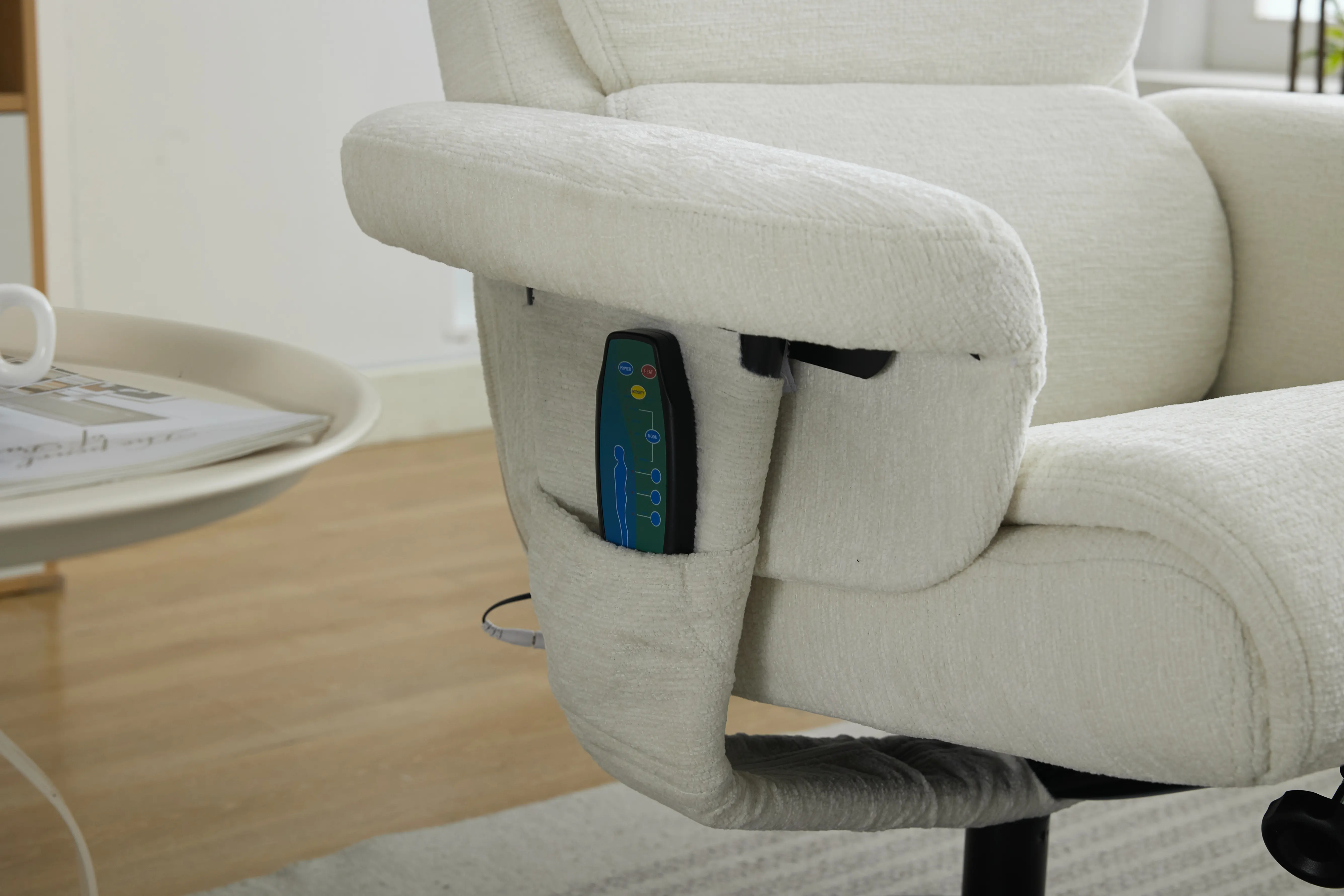 360° sukimosi funkcija ir šoninė kišenė: Krėslas laisvai sukasi aplink savo ašį, užtikrindamas visišką lankstumą, o praktiškoje šoninėje kišenėje masažo pultelis visuomet bus po ranka.