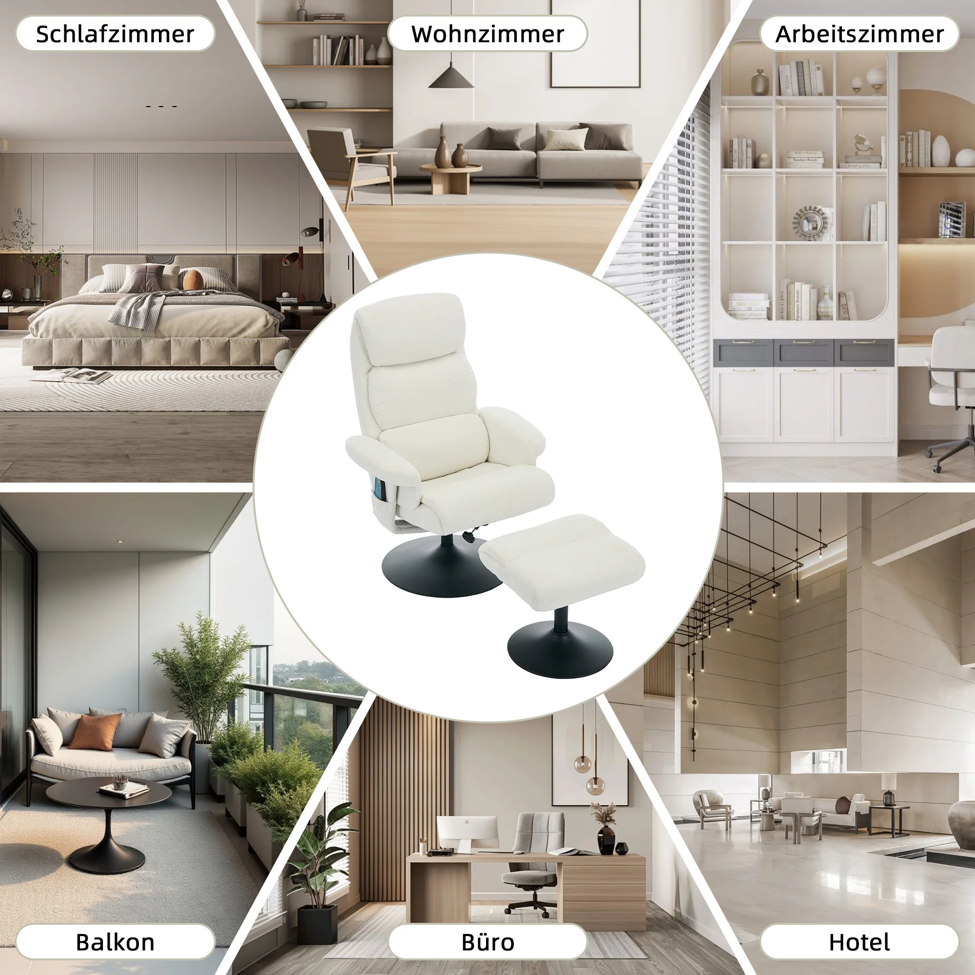 Ergonomiškas atlošas (iki 140°): Reguliuokite atlošo kampą iki 140 laipsnių ir raskite patogiausią padėtį poilsiui. Kartu su pridedamu pufu kojoms užtikrinamas visiškas komfortas.